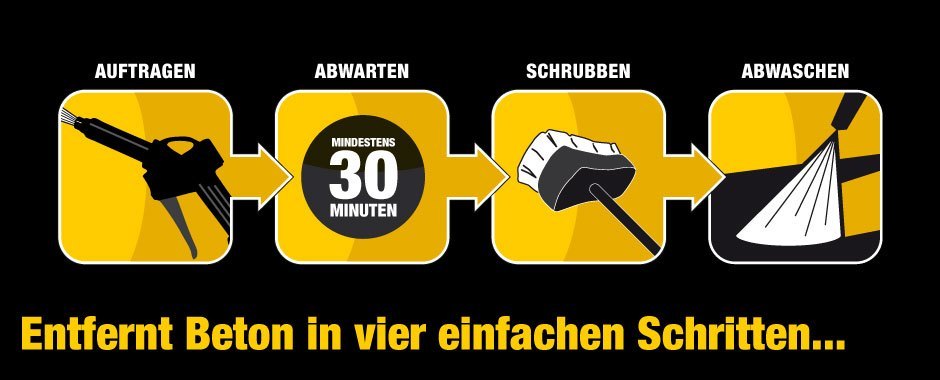 Entfernen Sie Beton ohne ätzende Säuren, ohne Personal zu verletzen, ohne Metalloberflächen zu zerstören, ohne Farbe und Lackierung zu beschädigen, ohne die Umwelt zu schädigen, ohne saures Abflusswasser zu erzeugen, ohne irgendwelche Oberflächen zu beschädigen.